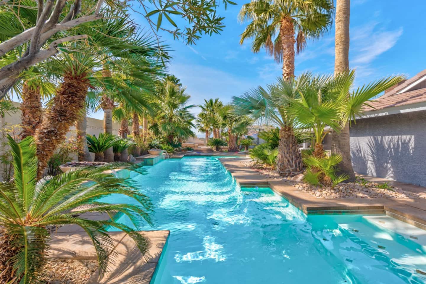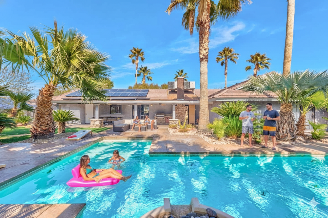 Relish the abundant shade and outdoor seating, creating an inviting space for relaxation and soaking up the surroundings. Make unforgettable memories in this extraordinary retreat, complete with spacious bedrooms, a sparkling pool, a rejuvenating spa, and a variety of entertaining games.