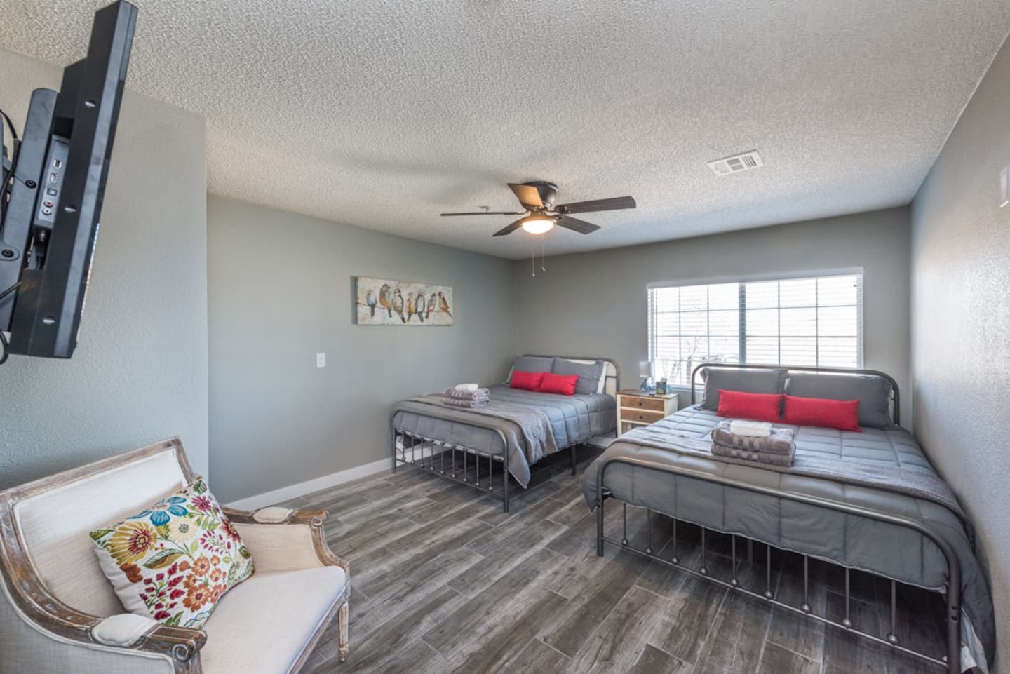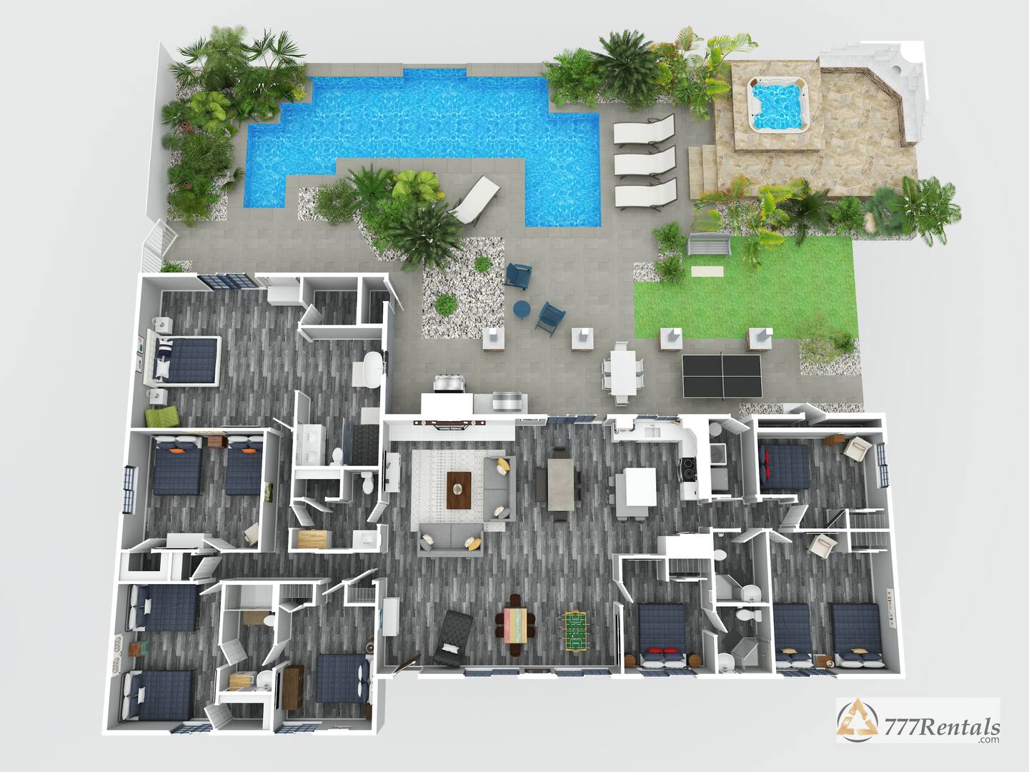 This is the 777RENTALS Serenity 2 Estate property (one of MANY properties that we offer). Each bedroom and common area of this 777RENTALS Southwest Castle property is equipped with a Roku TV. Guests can confidently use their own app accounts and subscriptions on your Roku® streaming device. Guests can enjoy free content, live TV, and music from The Roku Channel, CBS News, iHeartRadio, and more, or try out any of the 10,000+ apps that Roku offers. Guest can also add any app they want from the Roku Streaming Channels Store. Guests can sign out at any time.