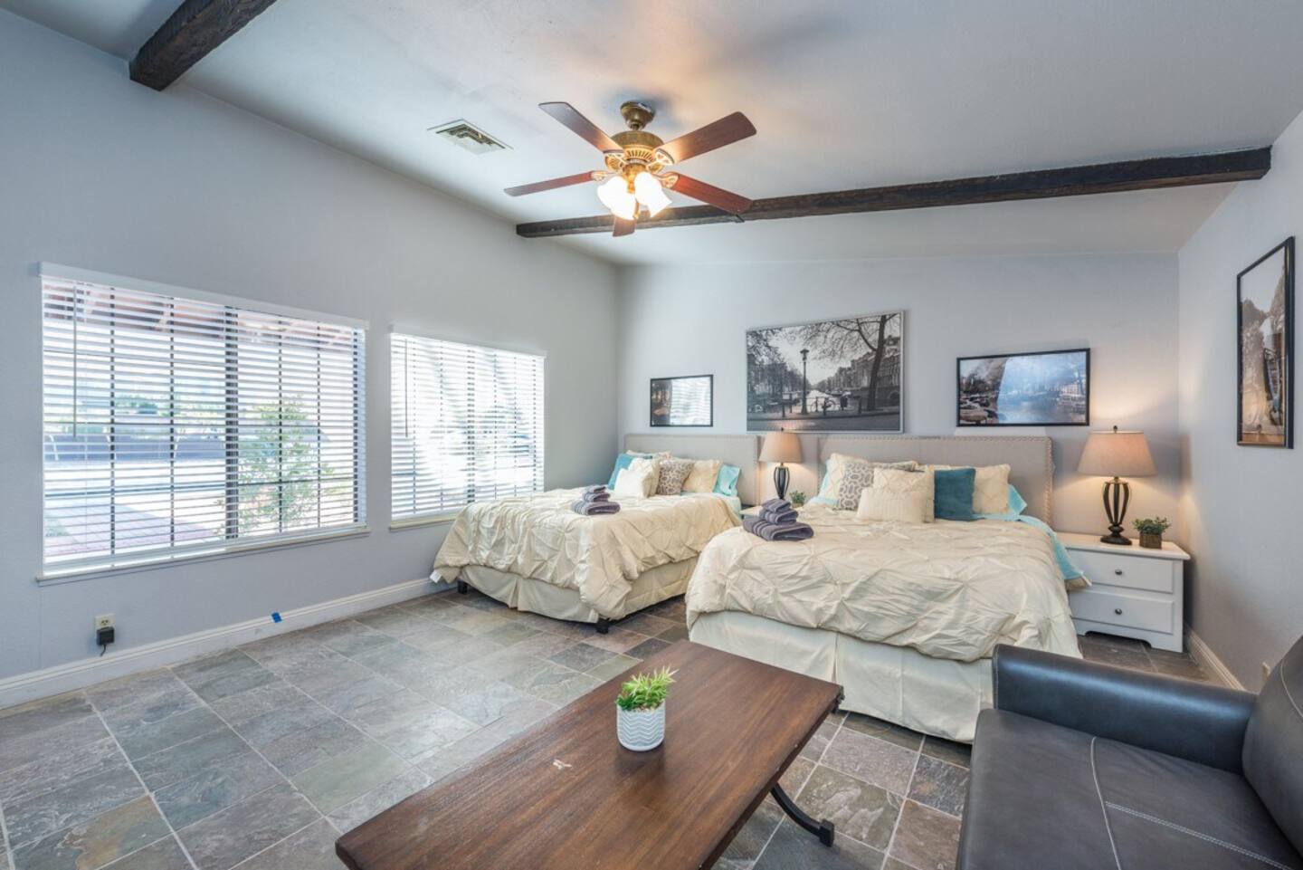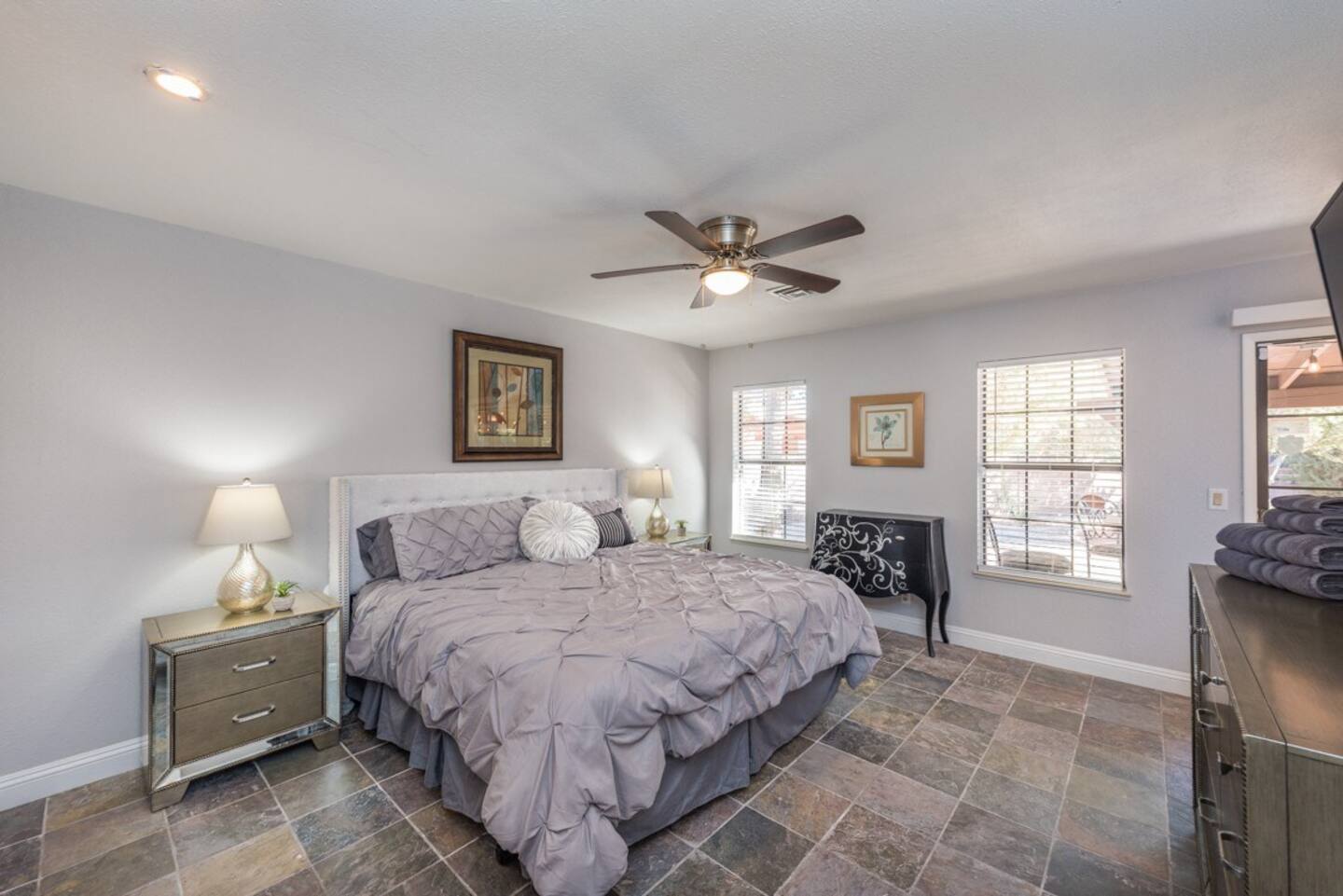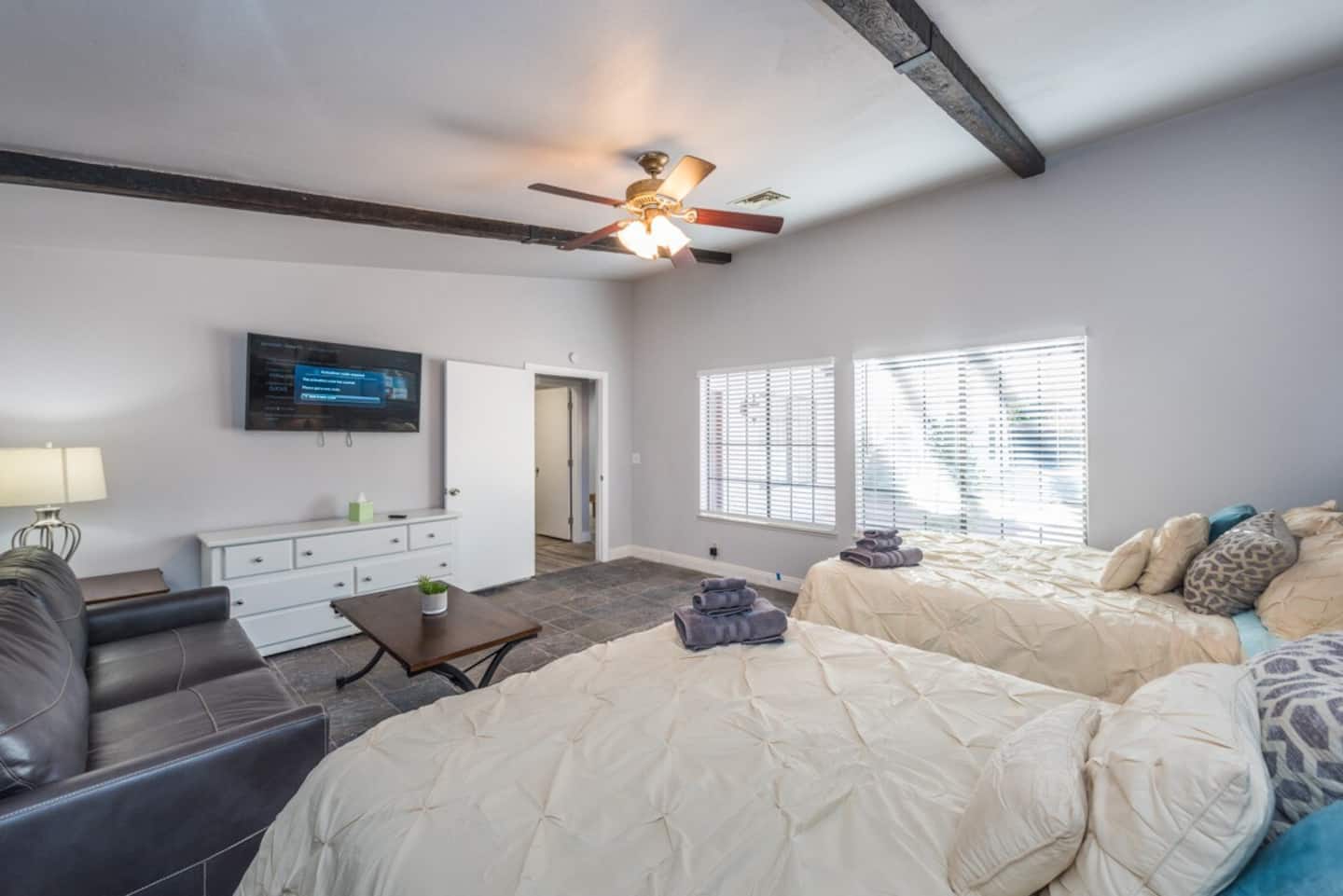 This is the 777RENTALS Southwest Estate property (one of MANY properties that we offer). Each bedroom and common area of this 777RENTALS Southwest Castle property is equipped with a Roku TV. Guests can confidently use their own app accounts and subscriptions on your RokuĀ® streaming device. Guests can enjoy free content, live TV, and music from The Roku Channel, CBS News, iHeartRadio, and more, or try out any of the 10,000+ apps that Roku offers. Guest can also add any app they want from the Roku Streaming Channels Store. Guests can sign out at any time.