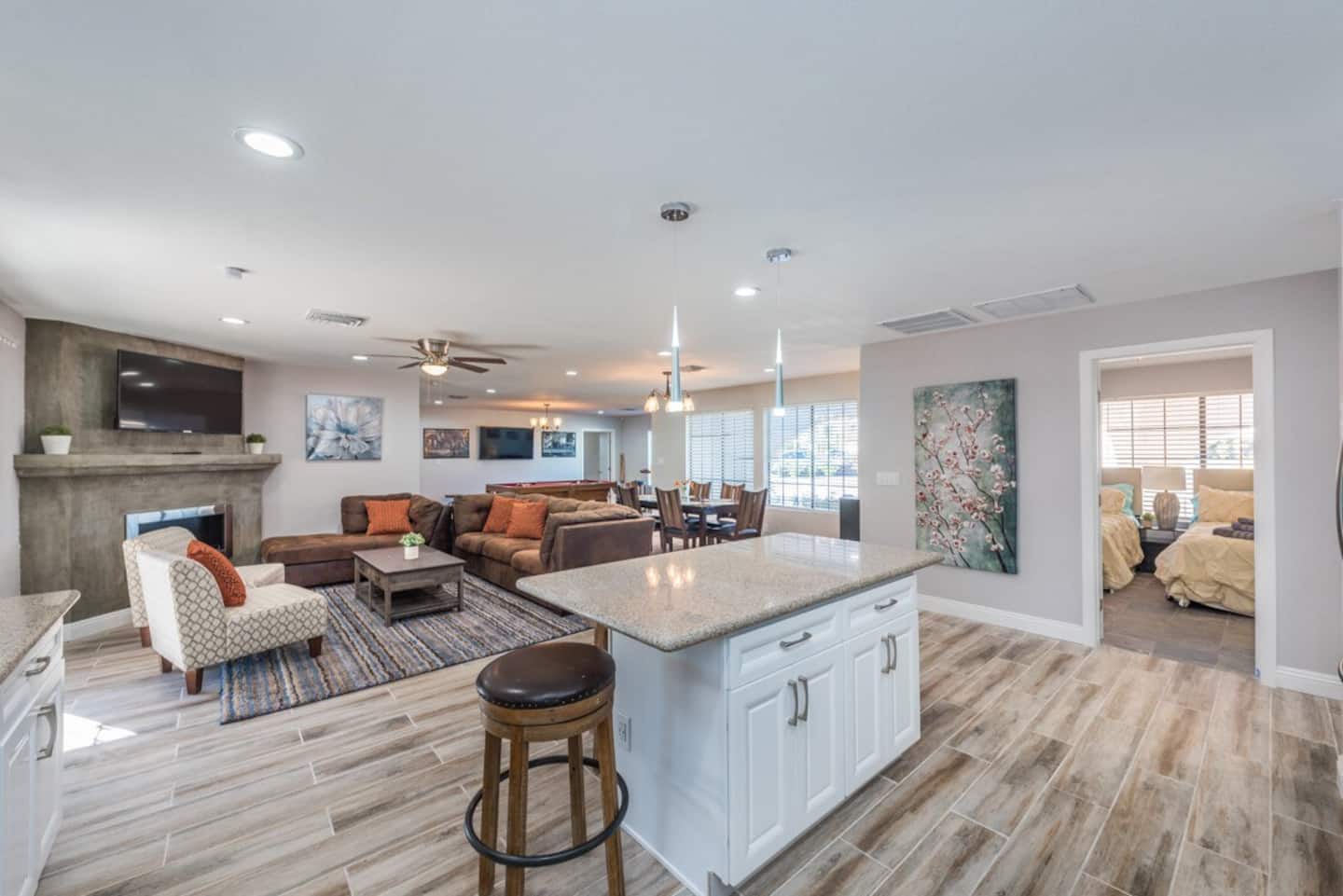 Indulge in the luxury of your own pool, spa, and pool table, perfect for relaxation and entertainment. Immerse yourself in the excitement and glamour of the world-famous Las Vegas Strip, just a few miles away. Take a moment to browse through the captivating pictures of this luxurious property, capturing the essence of its opulence and elegance. Experience the ultimate in privacy and comfort at your Las Vegas Retreat, where 13 beds await to ensure a restful night's sleep for all guests.