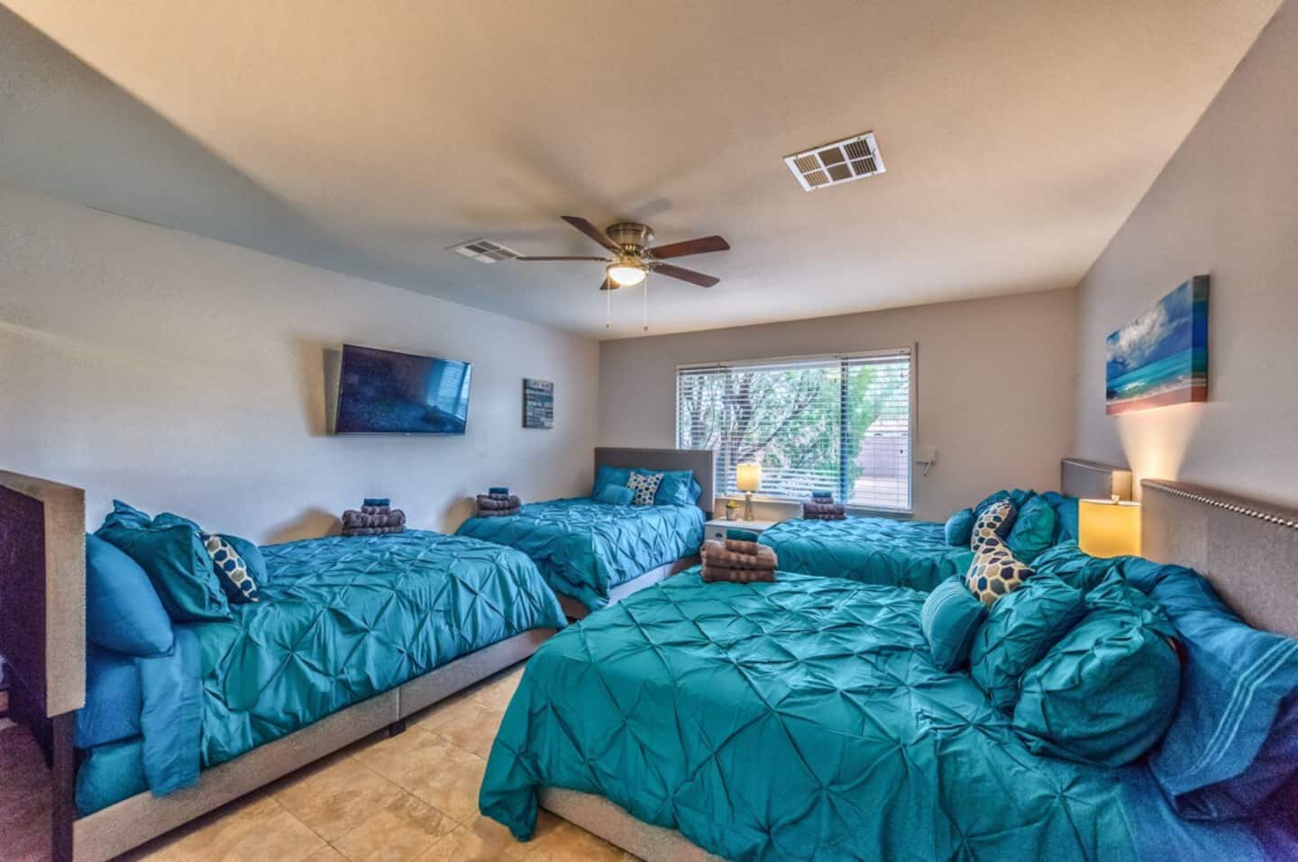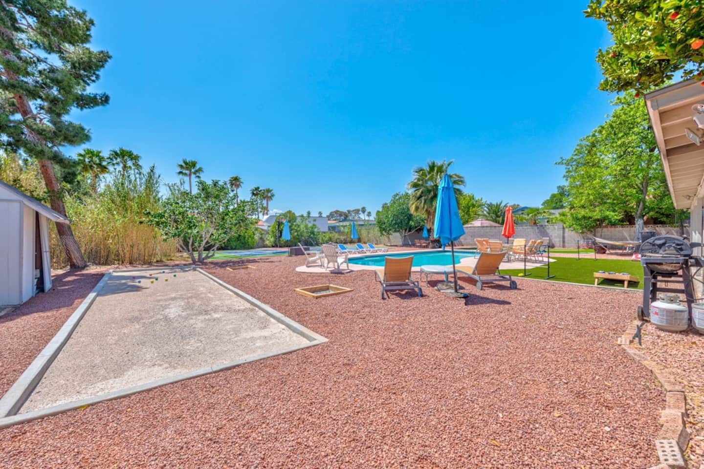This beautiful house is designed for non-stop fun, with a refreshing pool to cool off, Enjoy our Queen beds and 1 King size bed to accommodate your crew in comfort. With endless possibilities for excitement and relaxation, this house is the ultimate pad for your Las Vegas getaway.