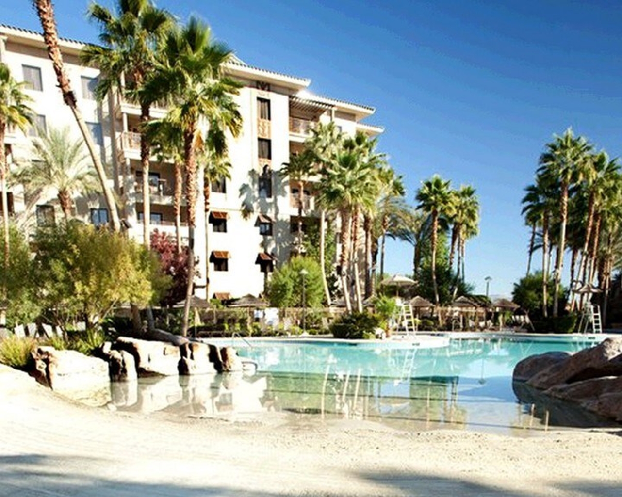 Tahiti Village is a 27 acre master planned resort located right on the famed Las Vegas Strip. This Tahitian themed resort includes 3 multi-unit residential towers surrounding a lushly landscaped courtyard. The heart of Tahitian themed resort is the beautiful main pool area, complete with a lagoon style pool, with sand-beach entry, a lazy river, a cascading waterfall, wet decks for lounging, hot tub and other onsite amenities.