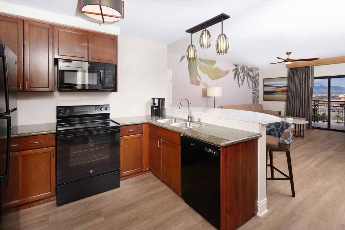 The suite features both a fully equipped, full-size kitchen and a kitchenette, making it easy to prepare everything from snacks to family feasts. A washer and dryer add the convenience you need for longer vacations, so you can pack light and refresh your wardrobe anytime.