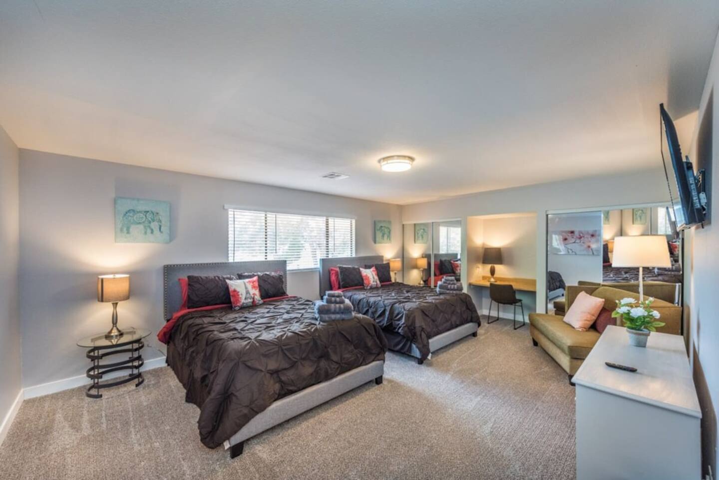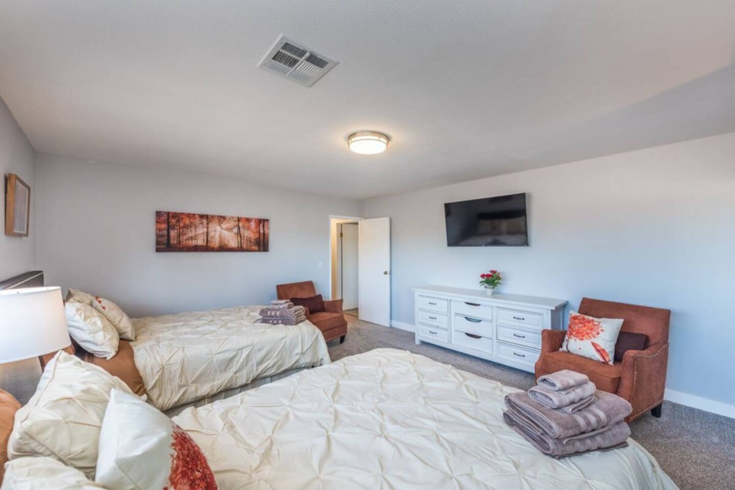 This is the 777RENTALS West Valley Estate property (one of MANY properties that we offer). Each bedroom and common area of this 777RENTALS Southwest Castle property is equipped with a Roku TV. Guests can confidently use their own app accounts and subscriptions on your RokuĀ® streaming device. Guests can enjoy free content, live TV, and music from The Roku Channel, CBS News, iHeartRadio, and more, or try out any of the 10,000+ apps that Roku offers. Guest can also add any app they want from the Roku Streaming Channels Store. Guests can sign out at any time.