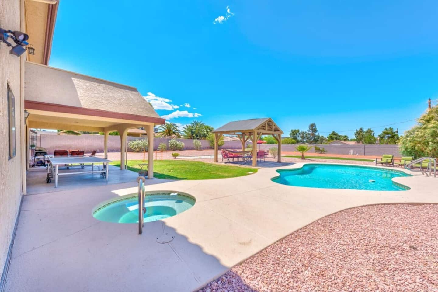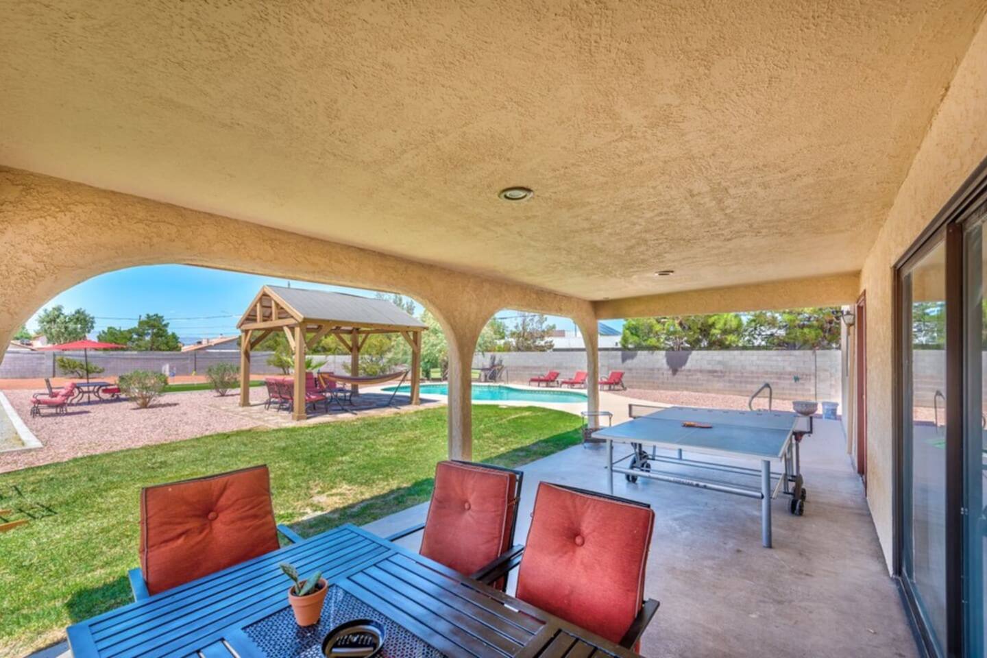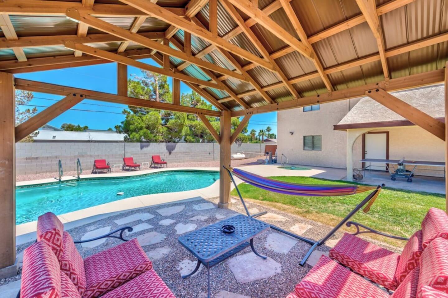 Our property offers plenty of shade and outdoor seating, providing the perfect setting for relaxation and socializing. Whether you're enjoying a morning coffee or sharing laughter-filled conversations, our outdoor spaces ensure a comfortable and inviting atmosphere for all guests. Escape to our spacious retreat and create unforgettable memories with your group. We strive to provide an exceptional stay, combining convenience, entertainment, and ample space to ensure your utmost satisfaction.