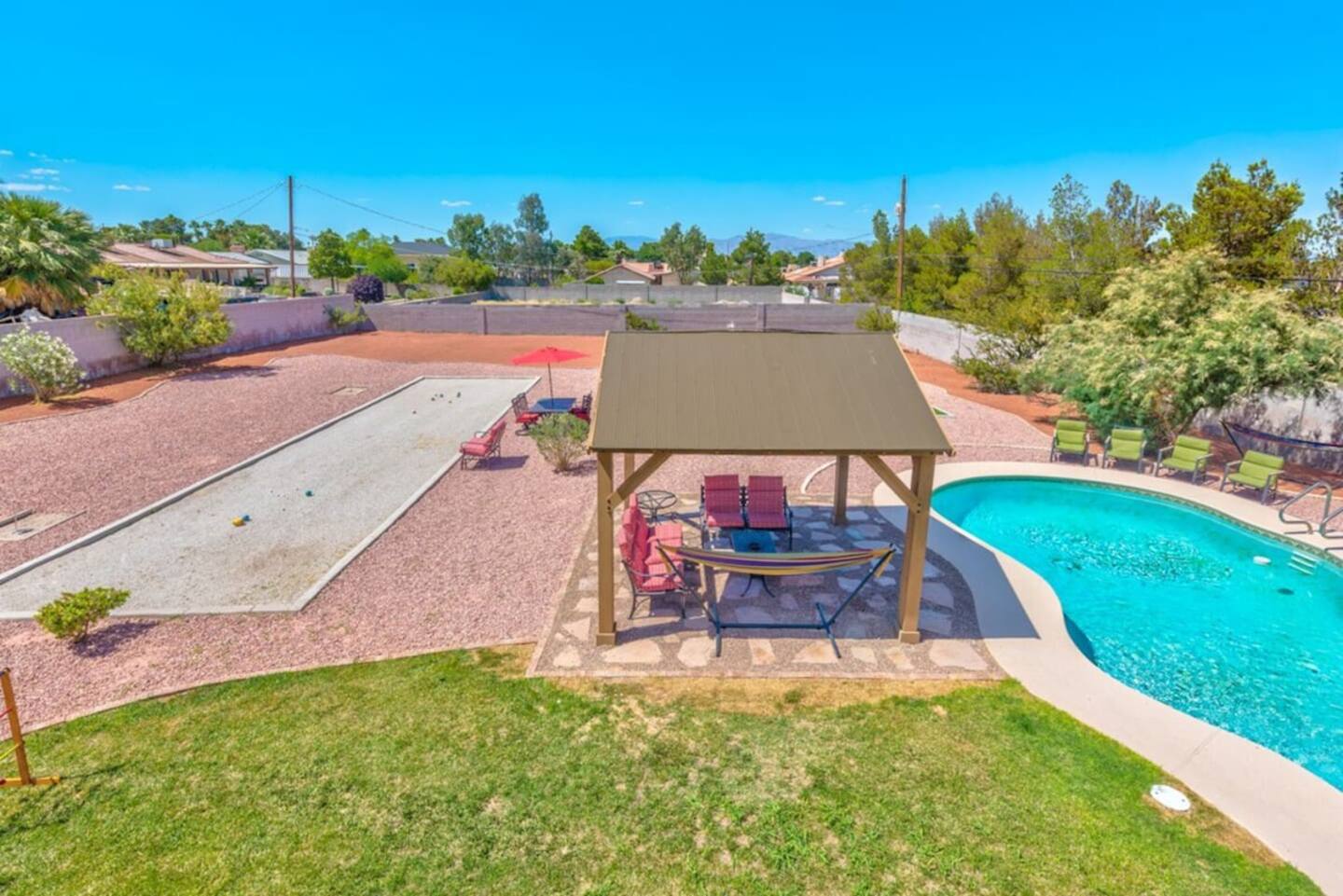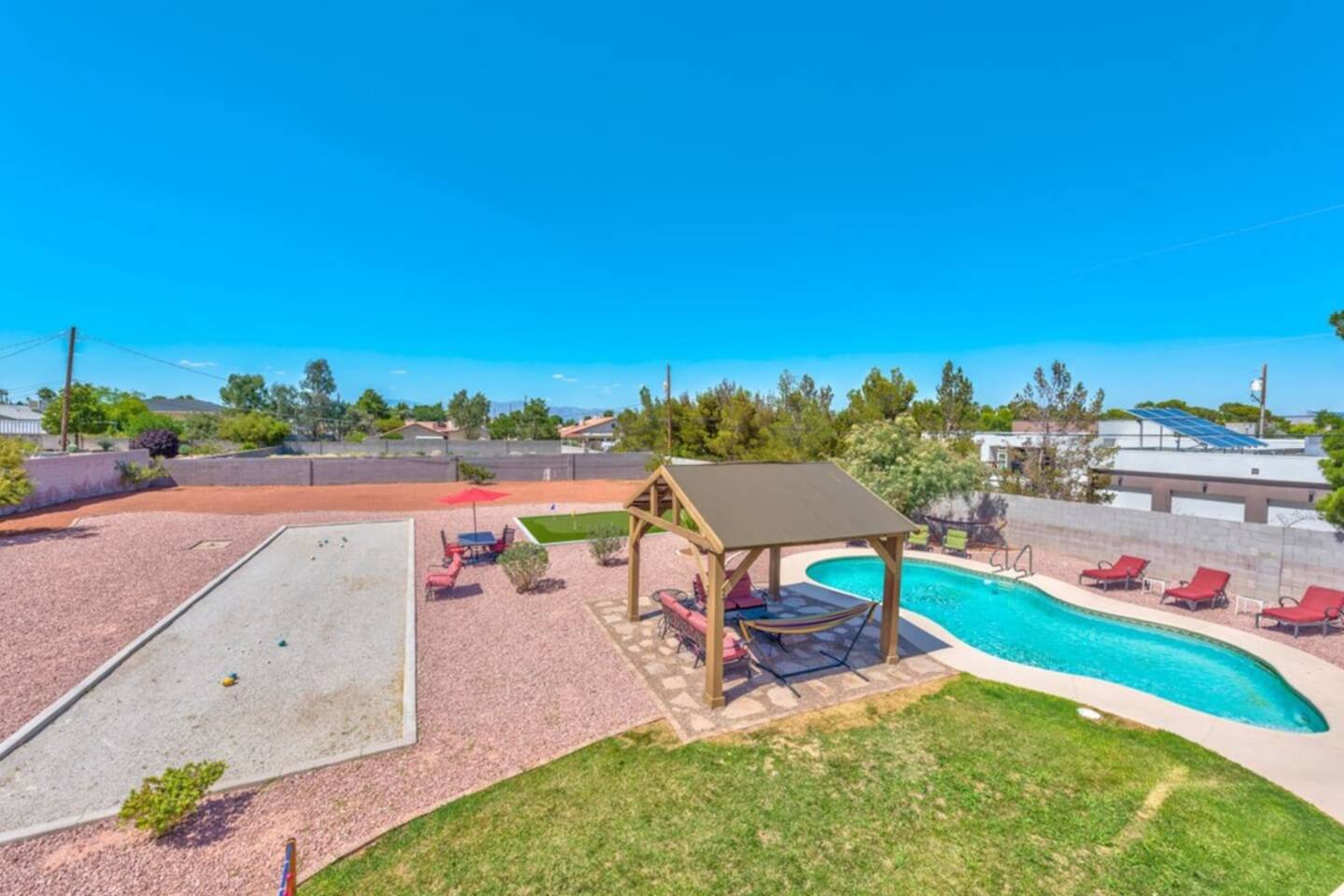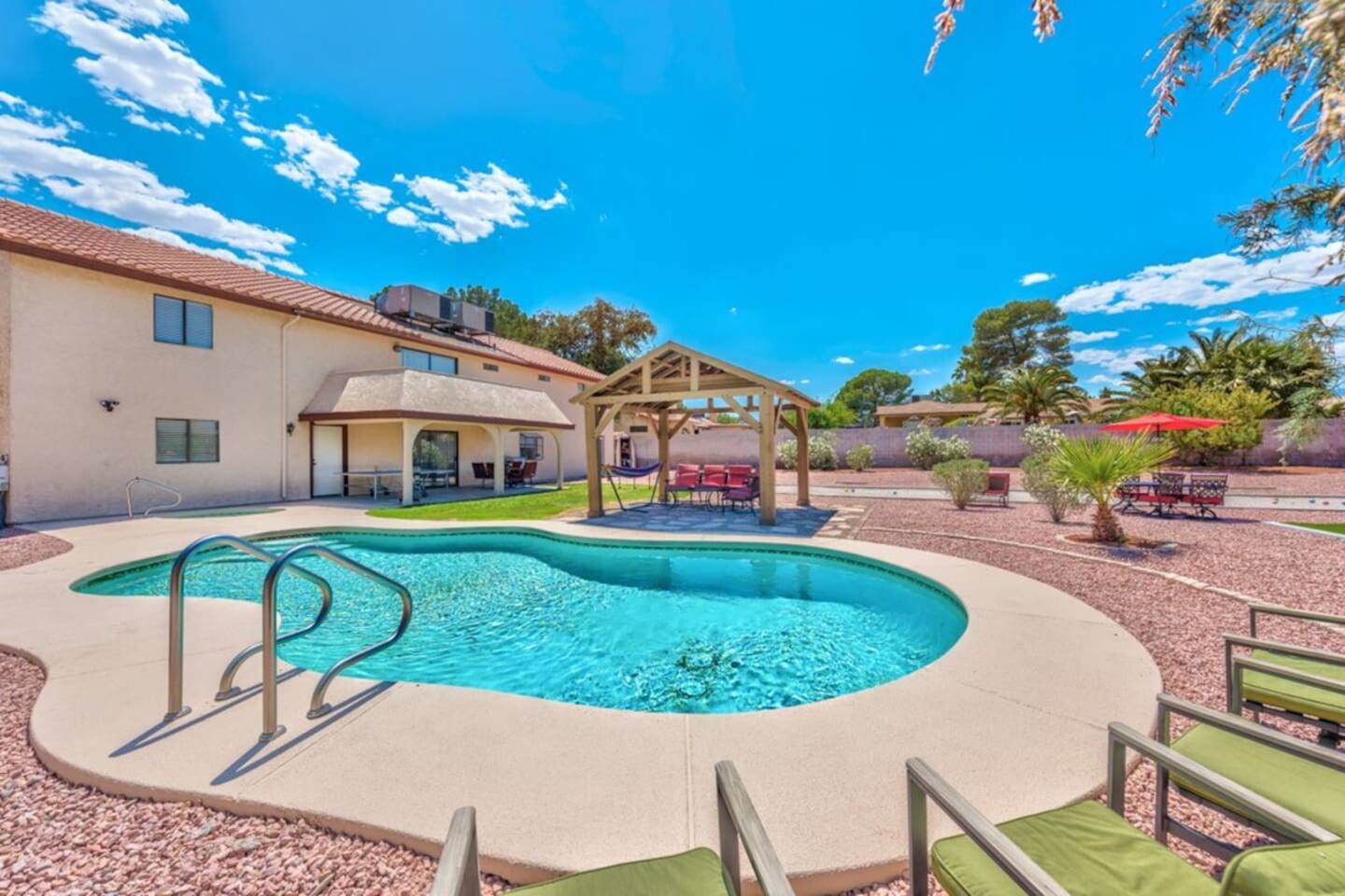 Our property offers plenty of shade and outdoor seating, providing the perfect setting for relaxation and socializing. Whether you're enjoying a morning coffee or sharing laughter-filled conversations, our outdoor spaces ensure a comfortable and inviting atmosphere for all guests. Escape to our spacious retreat and create unforgettable memories with your group. We strive to provide an exceptional stay, combining convenience, entertainment, and ample space to ensure your utmost satisfaction.