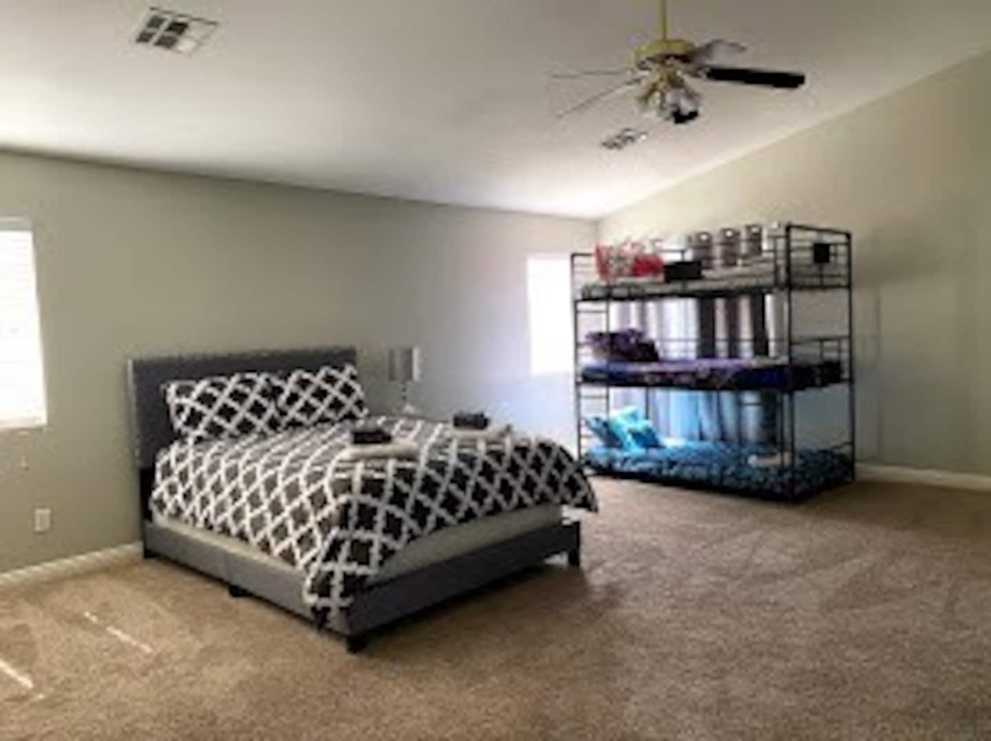 Bedroom 2 - Queen and Triple Bunkbed with 3 twin beds