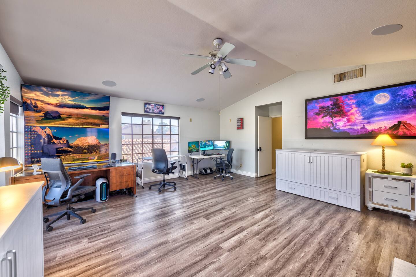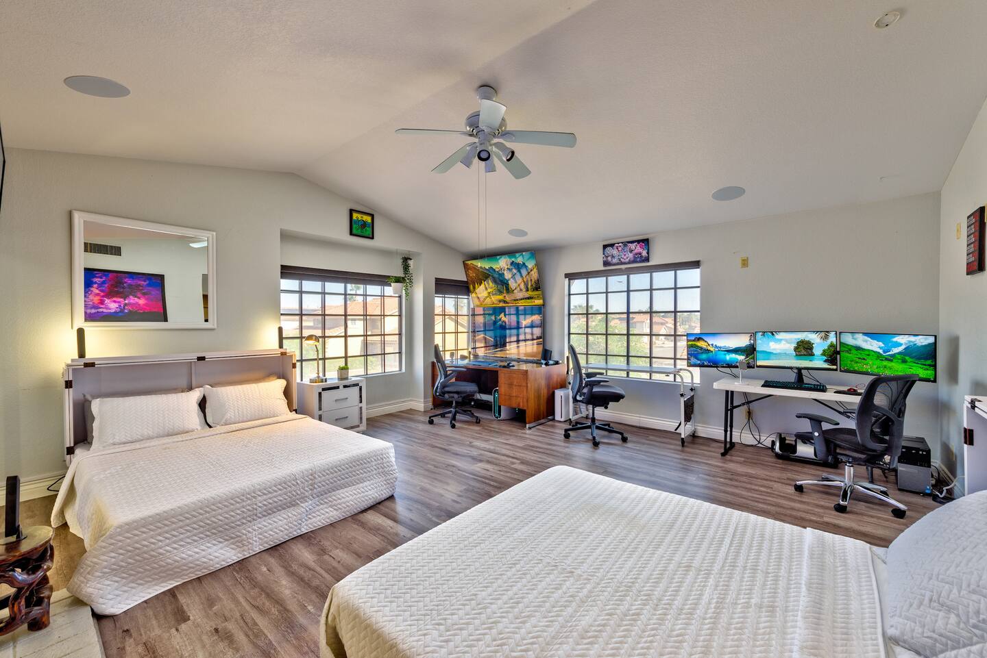 Moreover, elevate your hydration experience with two self-cleaning water dispensers, discreetly positioned in the master bedroom and kitchen area, dispensing Mountain Valley Spring Water from glass bottles. Embrace a lifestyle of luxury and convenience with three computers available for use, complete with a color laser printer. One computer boasts dual 60" screens, another features a triple-screen setup, and the third offers a double-screen configuration. Experience the epitome of Spring Valley living in this exceptional sanctuary.