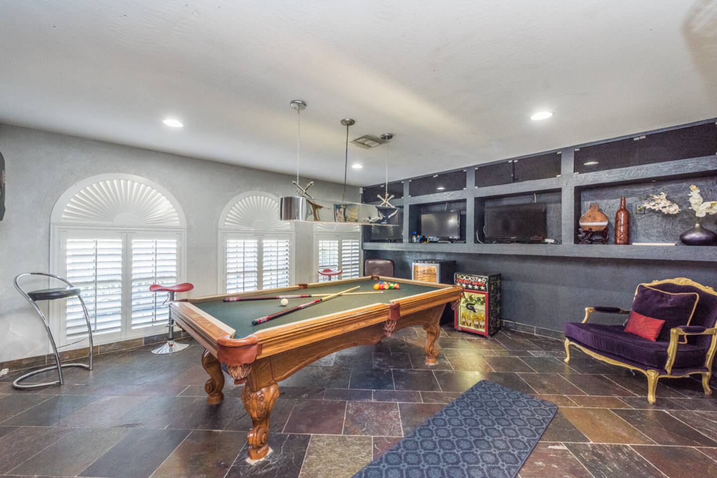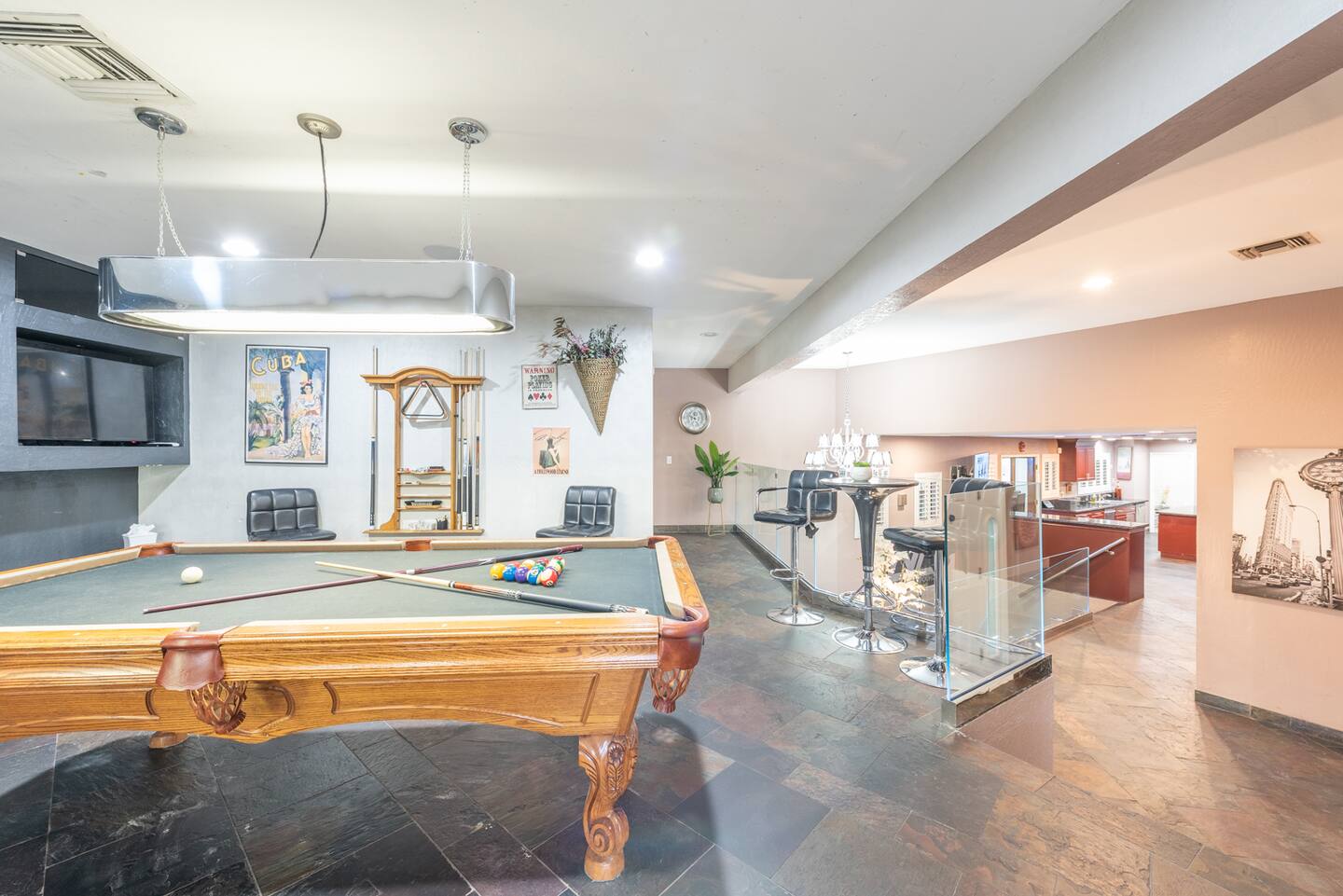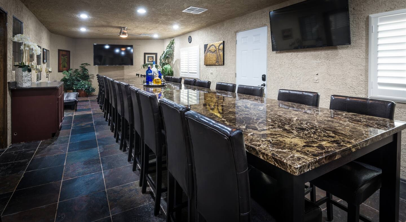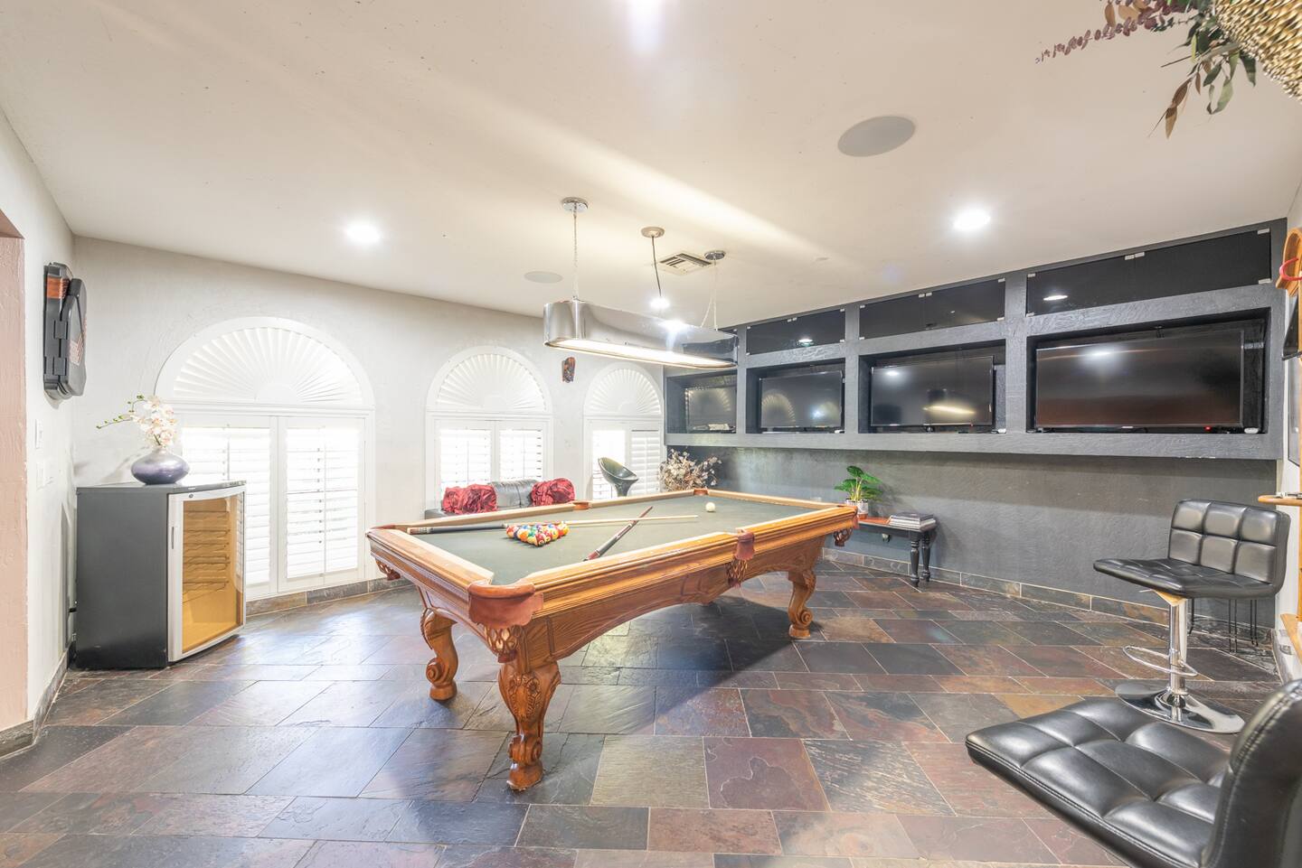 For those seeking recreation, the billiards room offers 4 screens to accompany your game, ensuring every shot is taken in style.