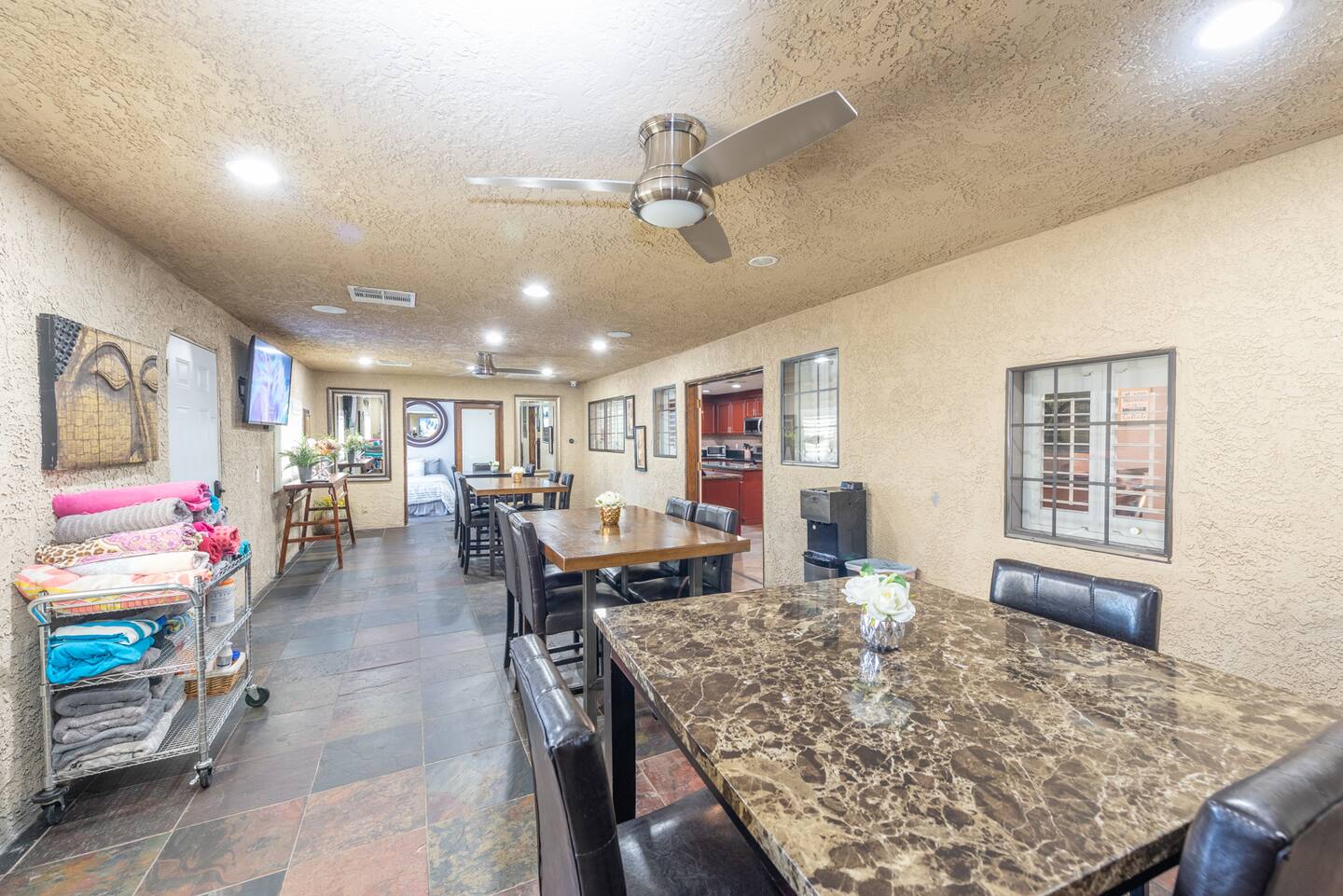 For business travelers, Gaia Villa offers more than just luxury. Utilize our hardwired computer system to cast your presentations or stream live events to 16 strategically placed TVs throughout the property, ensuring your message reaches every corner of your gathering. Plus, enjoy full property WiFi coverage for seamless connectivity.