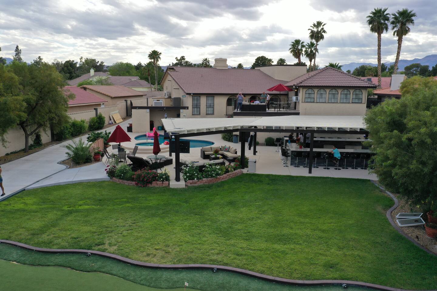 This is the 777RENTALS Players Compound property (one of MANY properties that we offer). Introducing the Gaia Villa - a realm of unparalleled luxury nestled just 5 miles west of the Strip. This haven boasts 10 opulent bedrooms, 13.5 lavish baths, and accommodations for a large group. Step inside to discover a world where entertainment and business seamlessly intertwine.