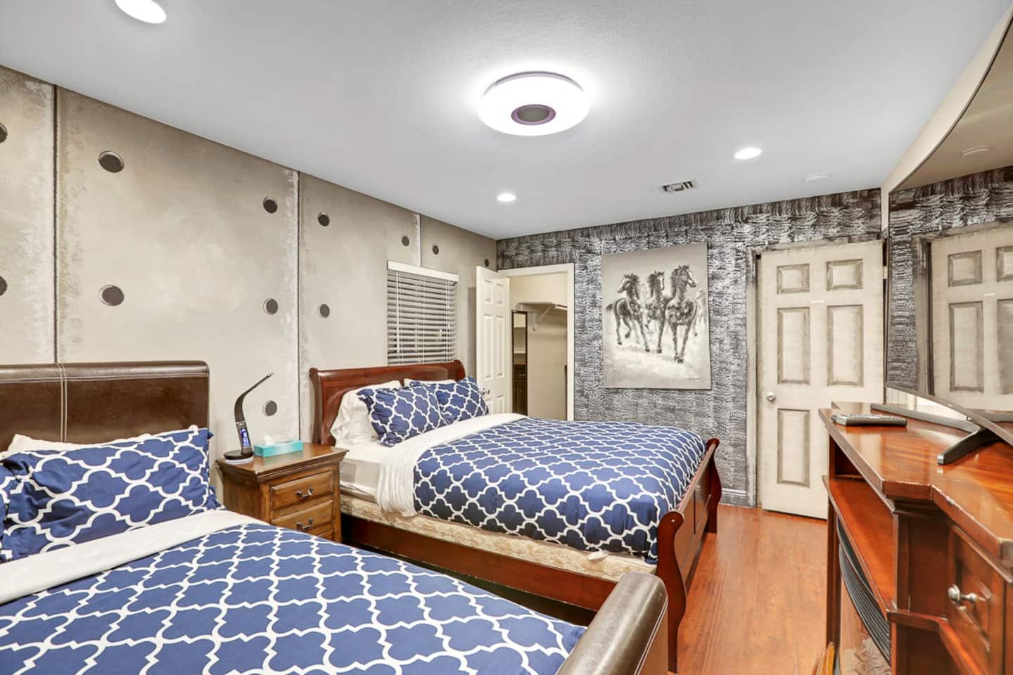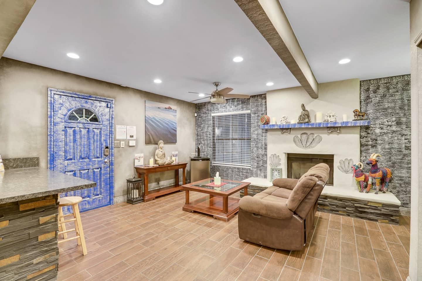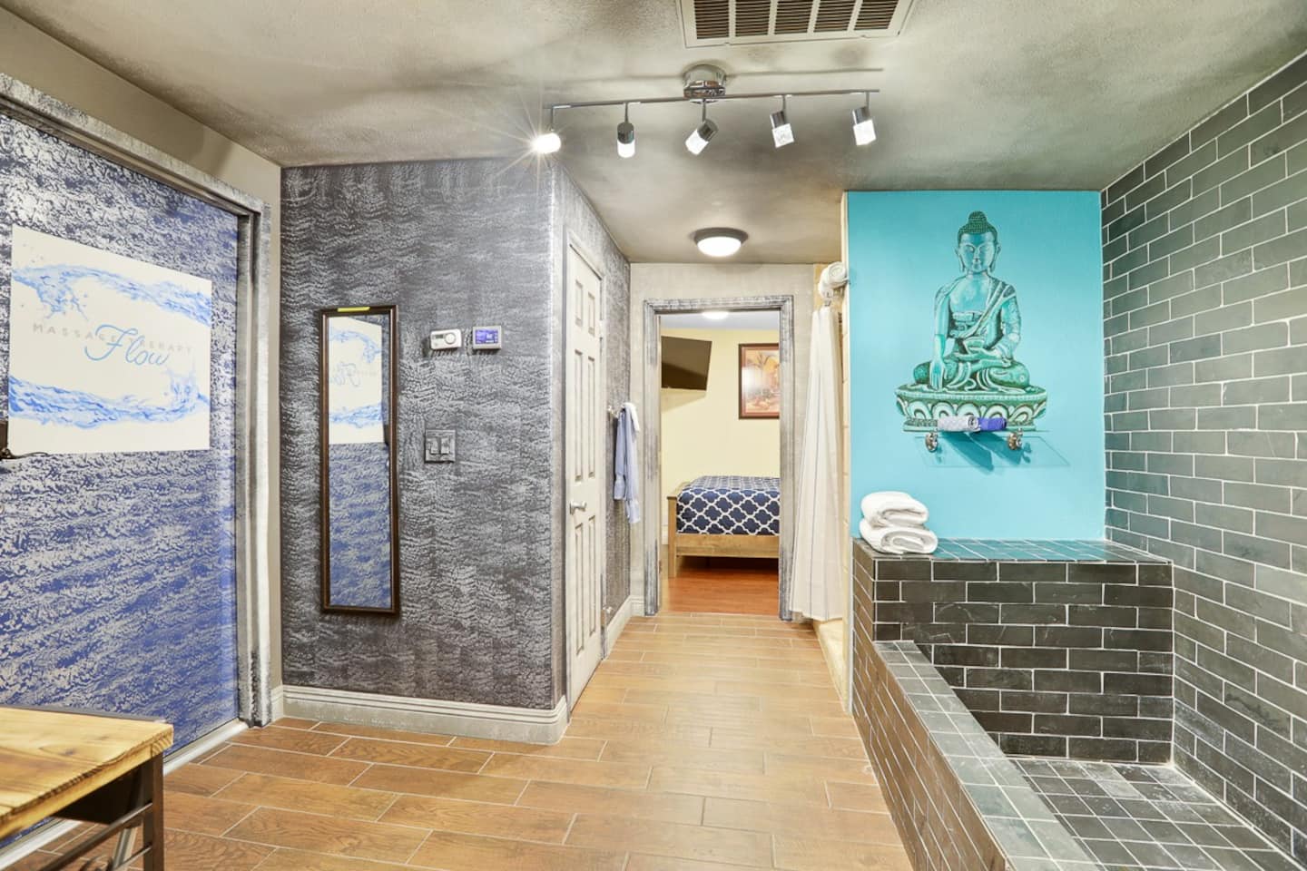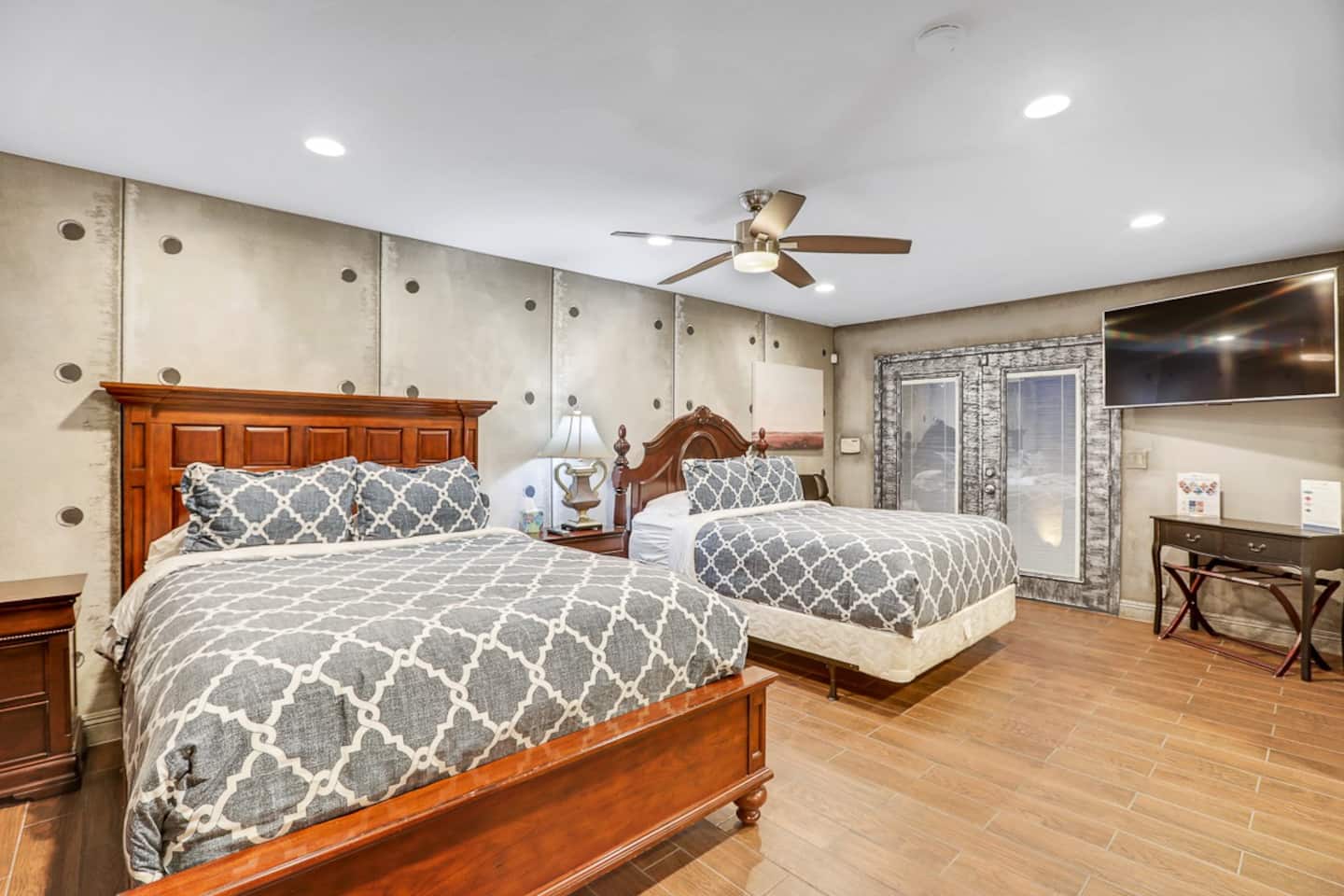For the happy go lucky Vegas trip, fun is the center of each and every occasion. That is why we have built 8 water works into the property to ensure you the fun even in the hot Vegas sun. The center of the 8-water works is a huge resort pool featuring waterfalls, grotto, swim up bars with bar benches in the water, and Hawaiian style Palapa as your shades when you having a drink in the pool bar. A beach entry with 38 tall palm trees surrounding the pool and throughout the mansion, when you are sitting in the pool, it is a question to ponder if you are in Hawaii or heaven on earth Vegas. Either way, we feel you would be having a time of your life.