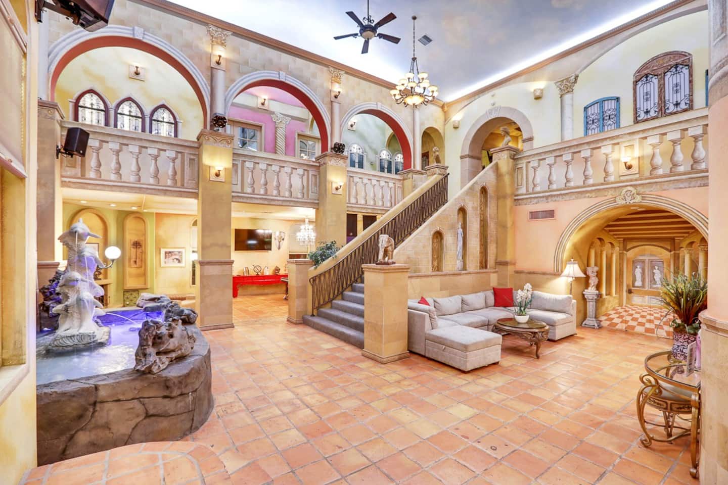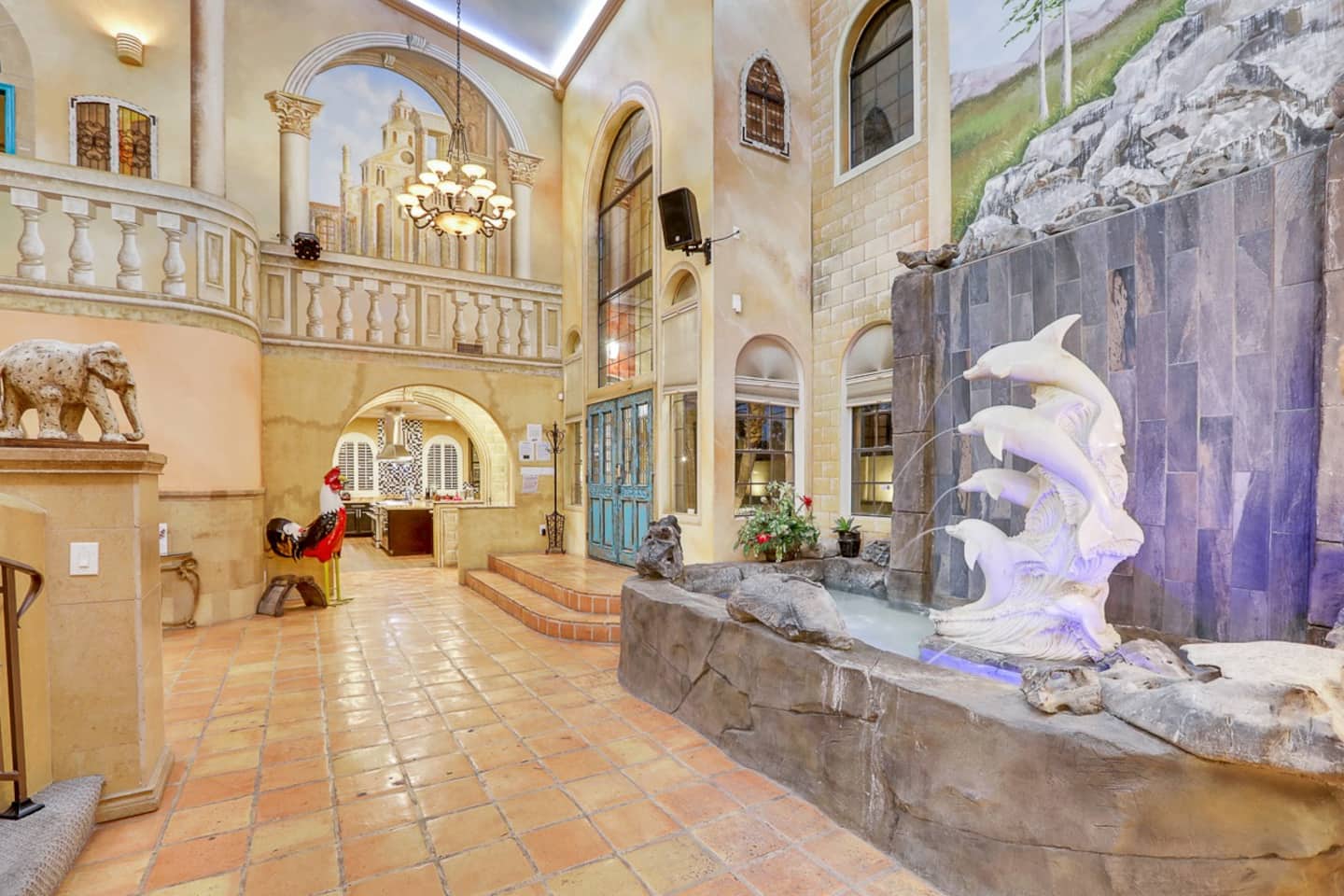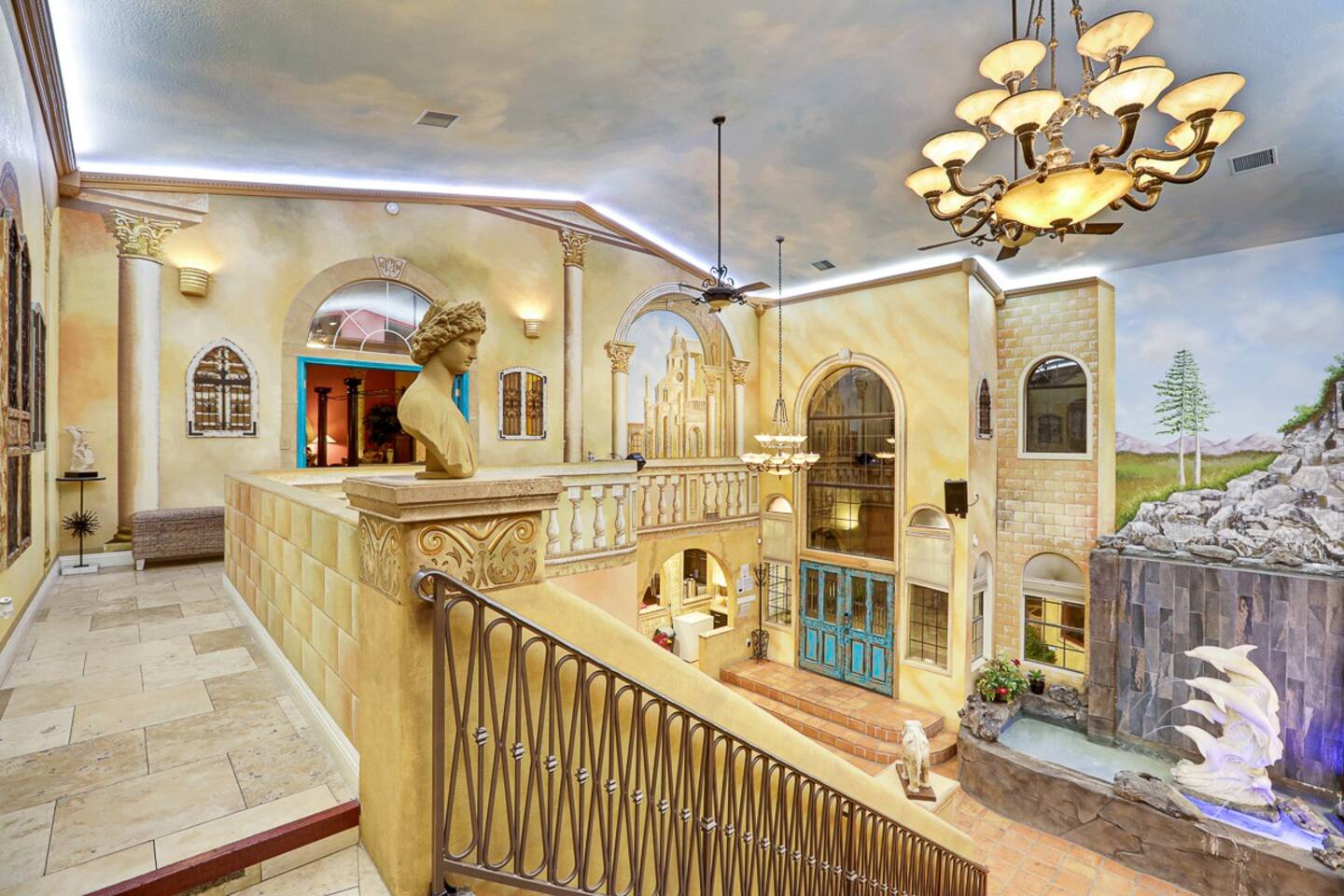With indoor blue skies, Venetian style columns, arches, flooring, stone walls, and all that is finest Italian design of yesteryears, the D&D Mansion will ensure you will be placed in ancient Rome with all of its history, culture and luxury. Marble statues of farmhouse Greek and Roman goddesses roam the whole mansion, both inside and out.