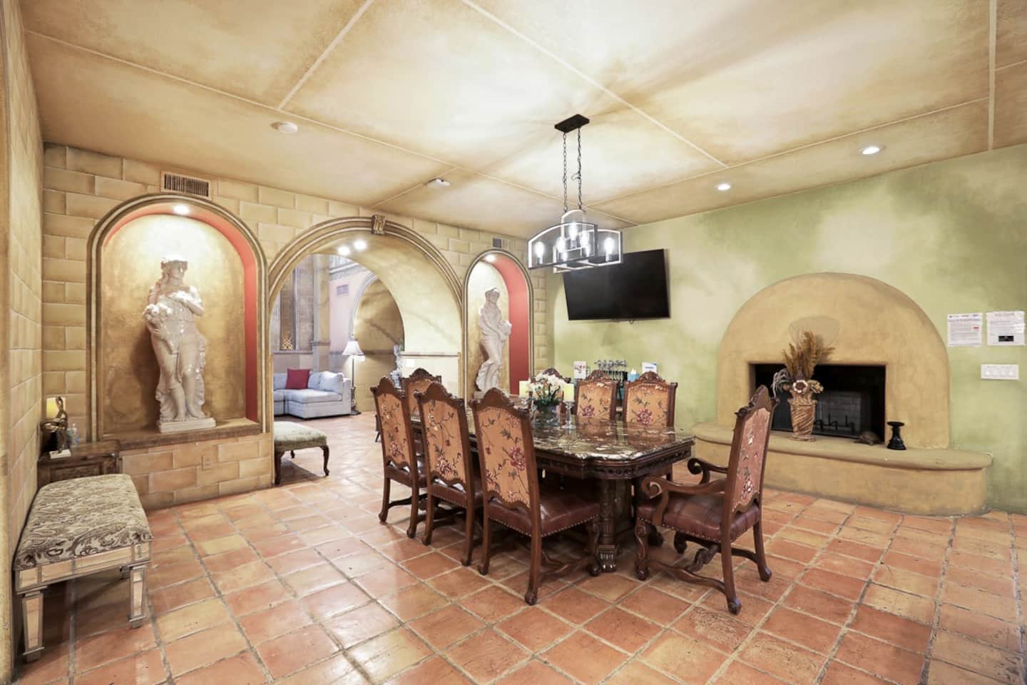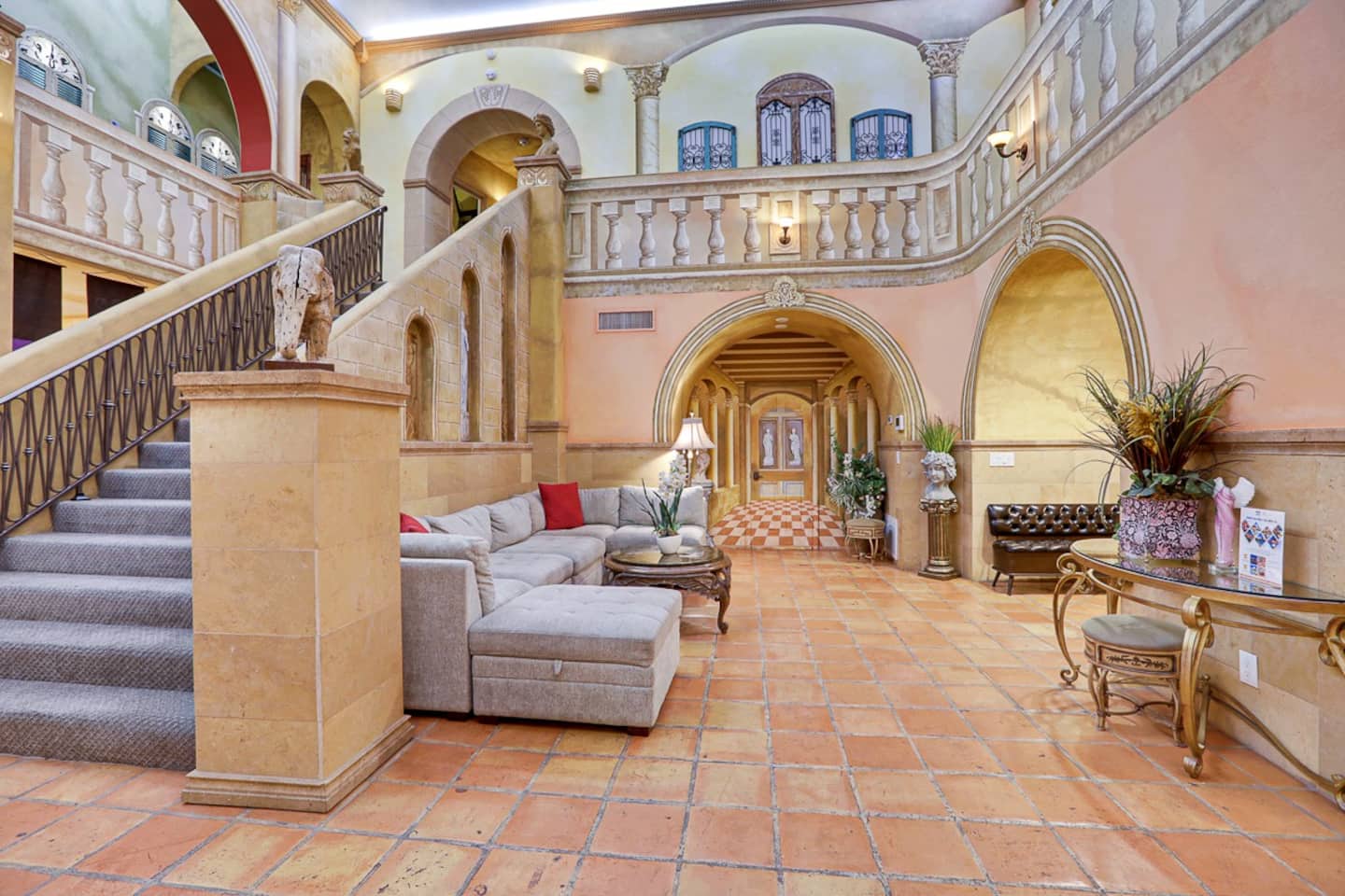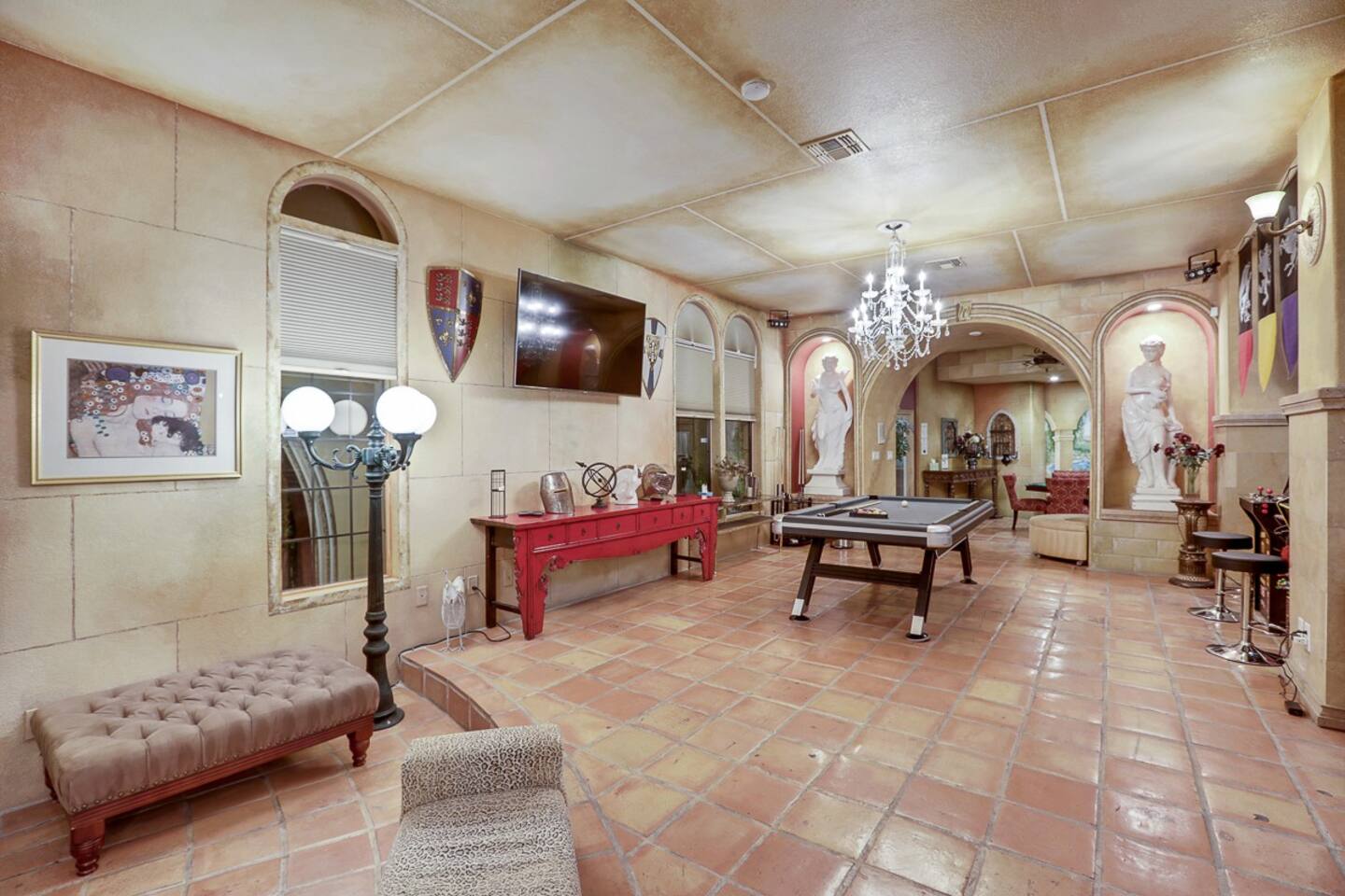 With indoor blue skies, Venetian style columns, arches, flooring, stone walls, and all that is finest Italian design of yesteryears, the D&D Mansion will ensure you will be placed in ancient Rome with all of its history, culture and luxury. Marble statues of farmhouse Greek and Roman goddesses roam the whole mansion, both inside and out.
