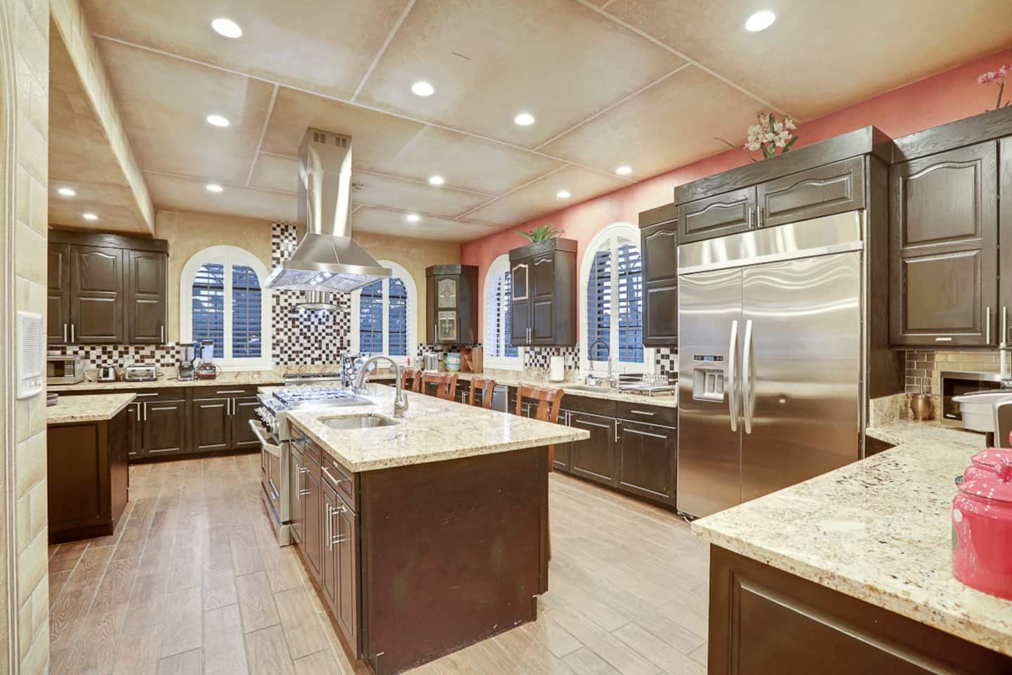 With 11 bedrooms, 13 bathrooms, a dedicated gym, a library, a large conference room, a breakfast area, a formal dining area, and a playing room. When you come to the main kitchen, you will be amazed at the size of this kitchen which many people say is the largest kitchen in any mansion.